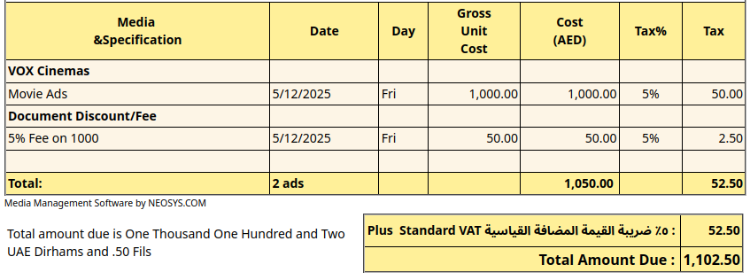 It may be possible that for some reason the number of ads that you have charged the client for are more than the number of ads you actually booked with the vehicle supplier. NEOSYS allows you to enter this information in the system.