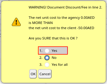 However, as long as the Finance team is aware of these possible issues, NEOSYS allows users to enter a negative Net Amount in the vehicle line, IF the word "NEGATIVE" is entered somewhere in the schedule. You can sneak it into any field in the schedule file, such as Private comments, so it doesn't show to the client.